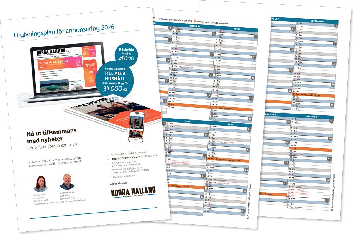 Välkommen att annonsera i Kungsbackas största tidning! Tisdagar, fredagar och söndagar i tidningen och alla dagar på norrahalland.se.