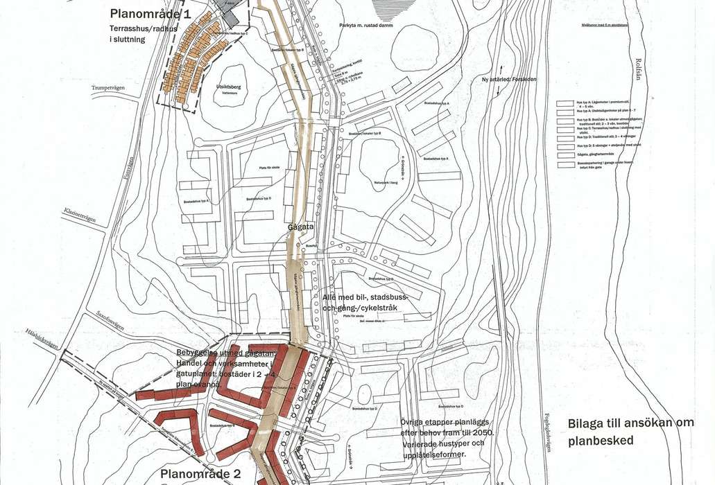 Där hade kommunen i sin förstudie skissat på runt 300 bostäder, men några exakta siffror fanns denna gång inte med i begäran om planbesked.