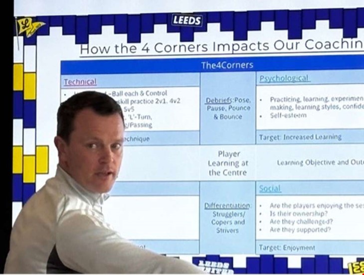 Under workshopen fick tränarna arbeta med att utveckla sina egna tränarfilosofier, samtidigt som de tog del av hur Leeds United arbetar med spelar- och ledarutveckling.