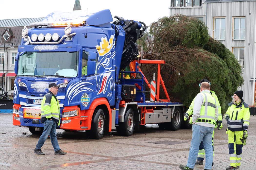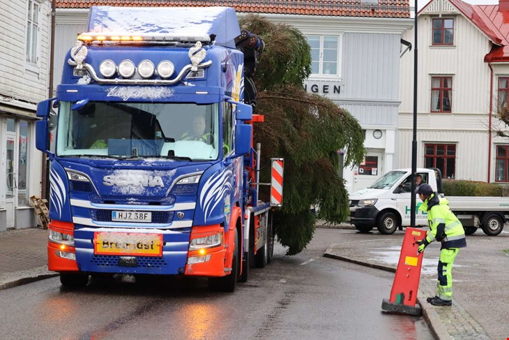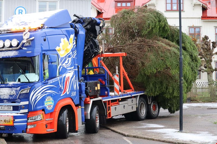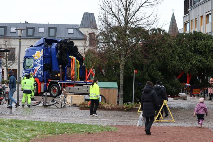 Som vanligt var det en utmaning. Men under onsdagen var det dags att transportera den stora julgranen till torget i Kungsbacka. Vid 12.20 stod den på sin plats.