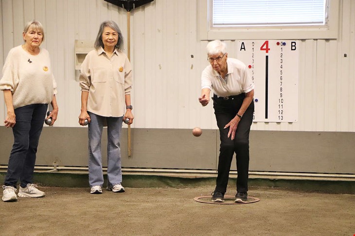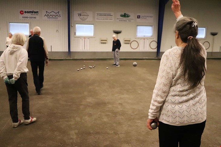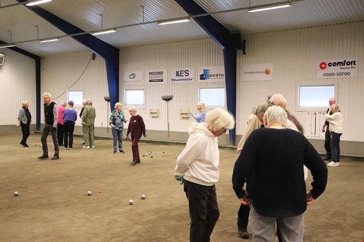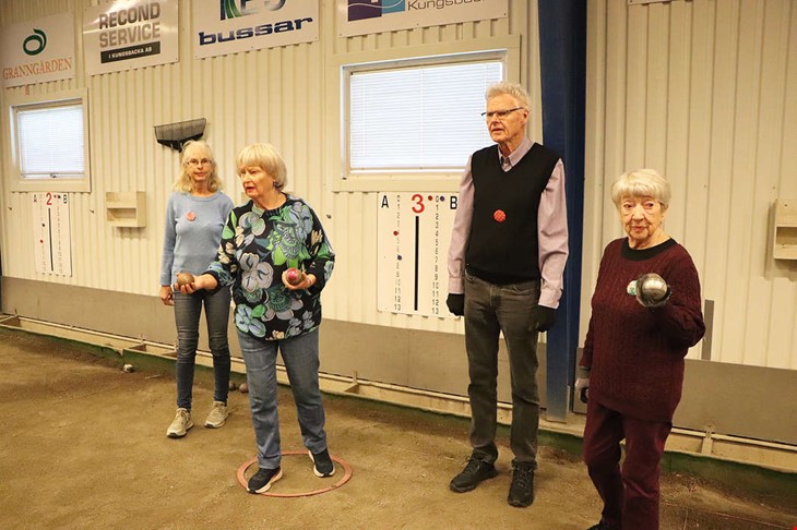 En gång i veckan arrangerar föreningen SPF Seniorerna Kungsbacka Boulespel på inlag i Kungsbacka. Under måndagen dök cirka ett 15-tal deltagare upp för att spela, fika och umgås. Men de tävlar inte.