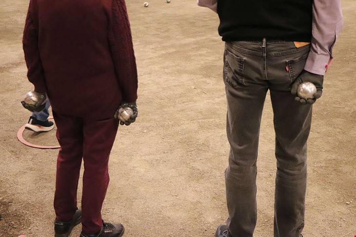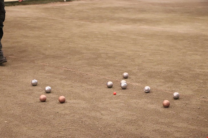 Närmast lillen vinner. Efter kastad omgång mäts avståndet mellan boulkloten till den lilla kulan. Foto: Jenny Segergren.