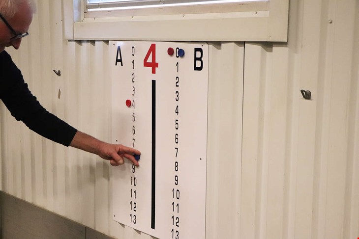 Inga förlorare. Ulf Schillerström för poäng för sin bana men de tävlar inte utanför träffarna berättar Margot Stålby som håller i boulen. Foto: Jenny Segergren.