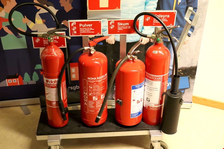 Brandsläckare i hemmet kan räddningen. Dessa är någon modell större än 6-kilossläckarna som man rekommenderas ha hemma. Foto: Alexander Fogde