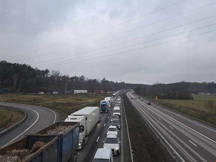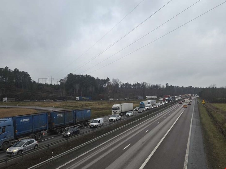 Långa köer på E6 efter olyckan.