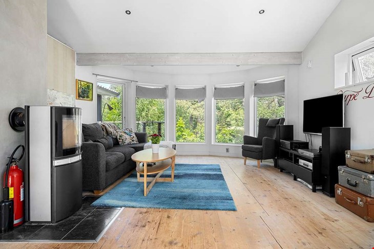 Huset, som byggdes 1965 och ligger på Torpa Kvarnväg, är ett enfamiljshus med fyra rum. I vardagsrummet finns flera fönster i olika väderstreck som ger ett generöst ljusinsläpp. Här finns också bostadens kamin.