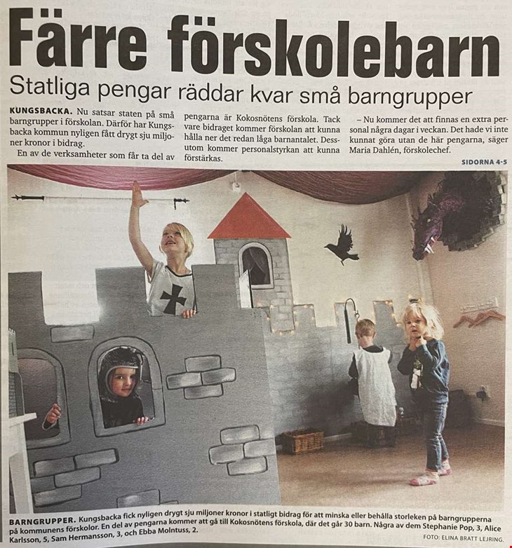 Staten satsade pengar på små barngrupper i förskolan. Kungsbacka kommun fick drygt sju miljoner kronor i bidrag, vilket gjorde att planerade nedläggningar av förskolor i Kullavik, Vallda och Onsala kunde undvikas.