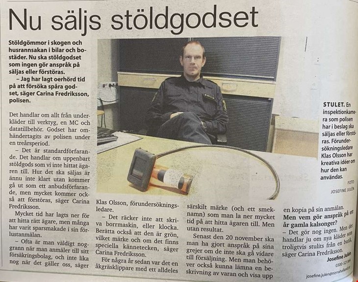 – Det handlar om uppenbart stöldgods som vi inte hittar ägaren till. Hur det ska säljas är ännu inte klart utan ett anbudsförfarande, men mycket kommer att förstöras, sa Carina Fredriksson.