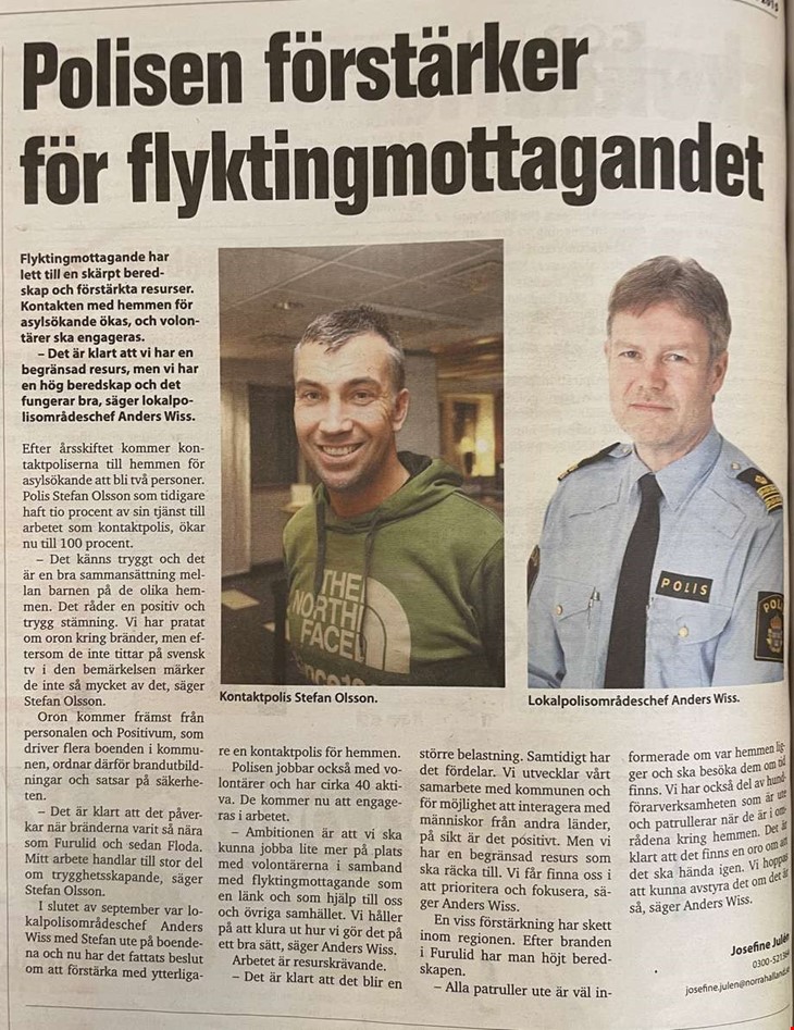 Inför flyktingmottagandet ökade polisen antalet kontaktpoliser till hemmen för asylsökande från en till två, och Stefan Olsson ökade sin tjänst från tio till hundra procent.