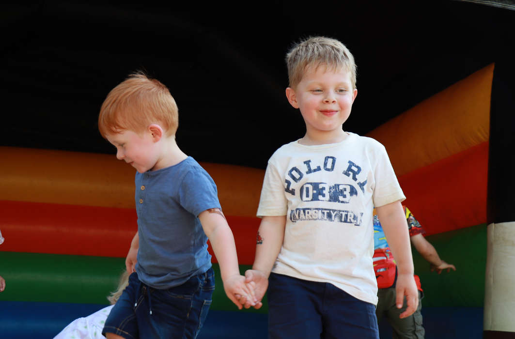 Det är strålande väder på torsdagen och barnen hoppar runt i hoppborgarna eller äter pannkaka och korv. Evenemanget vid Sankt Lars kyrka i Åsa, som även kommer att äga rum de kommande två torsdagarna i juni, arrangeras av Löftadalens pastorat.
