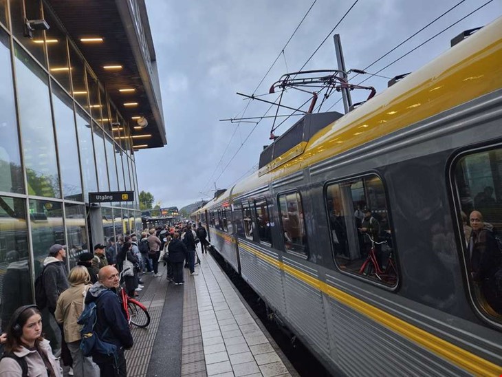 Många står och väntar vid Mölndal.