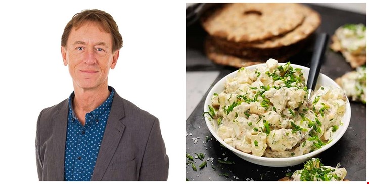 Och så då alltså vår gubbröra. Den går förstås att göra utan potatis, men på det här viset blir den lite mildare och barnvänligare.