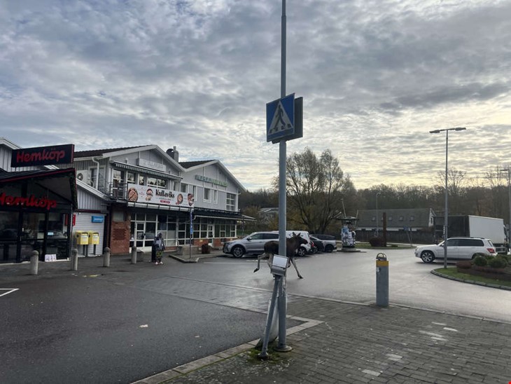 – Jag kom ut från affären och lastade in i bilen när jag hörde ett ljud. Helt plötsligt stod det en älg där, berättar hon.