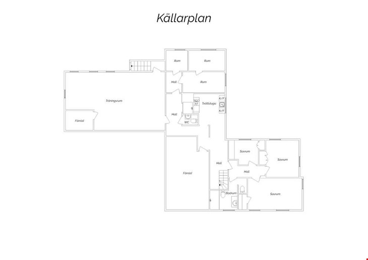 I den gemensamma källardelen finns tvättstuga, träningsrum, förråd, toalett och dusch.